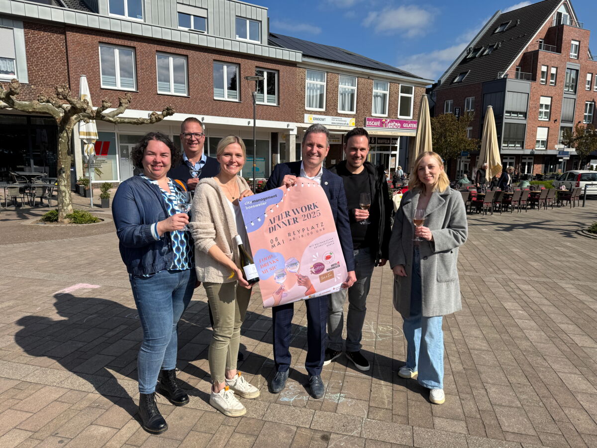 „Mit dem After Work Dinner haben wir ein Veranstaltungskonzept etabliert, das dazu einlädt, ein paar gesellige Stunden in der Baesweiler Innenstadt zu verbringen. Wir freuen uns auf zahlreiche Besucherinnen und Besucher“, unterstreicht Bürgermeister Pierre Froesch.
