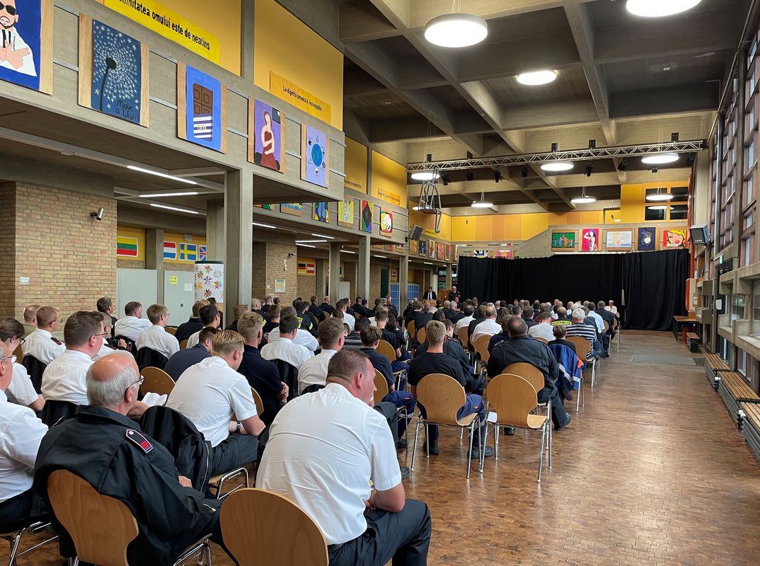 Bei der Jahreshauptversammlung der Freiwilligen Feuerwehr Baesweiler in der Aula der Realschule sind zahlreiche Mitglieder geehrt und befördert worden.