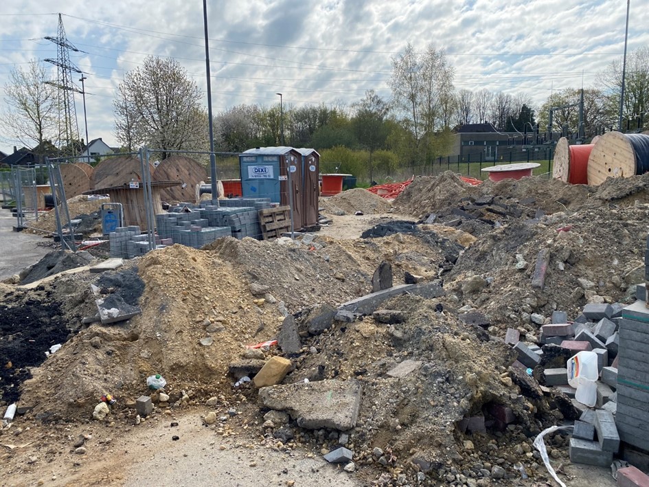 Lagerflächen, die seitens der Stadt Baesweiler dem Unternehmen zur Verfügung gestellt wurden, sind während der Arbeiten als Zwischenlager genutzt worden und ähnelten eher einer Baustelle als einem Lagerplatz.