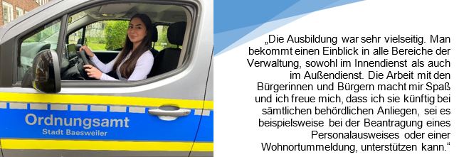 Darüber hinaus gibt es derzeit noch drei weitere Azubis bei der Stadt Baesweiler, deren Ausbildung schon fortgeschritten ist. Dana Hannemann hat ihr drittes Ausbildungsjahr zur Verwaltungsfachangestellten begonnen, Chenoa Garcia-Naranjo ist im fünften Semester des Dualen Studiums und Gianluca Natarelli im dritten Jahr der Ausbildung zum Fachangestellten für Bäderbetriebe im Freizeitbad.