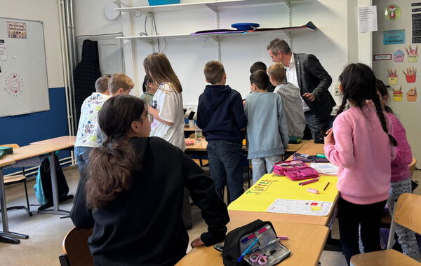 Um sich bei den „ehemaligen Nachbarn“ der Friedensschule zu verabschieden, besuchte Bürgermeister Pierre Froesch die beiden vierten Klassen der und bedankte sich bei ihnen für die gute Nachbarschaft.