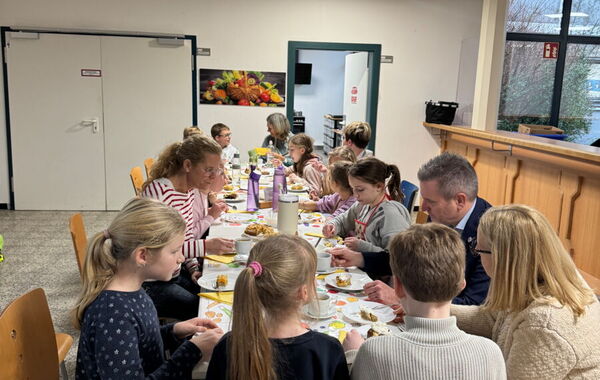 Begeisterte junge Köchinnen und Köche aus der Koch-AG der dritten und vierten Klasse der Grundschule Loverich luden Bürgermeister Pierre Froesch ein, um ihre Kochkünste zu präsentieren.