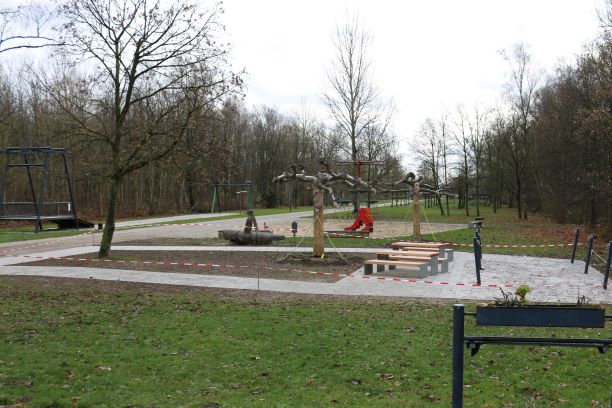 Nach dem Bau der sehr gut angenommenen neuen Schmetterlingsseilbahn sowie dem Klettergerät in Form einer Ödlandschrecke im Dezember 2020, wird derzeit noch ein neuer Picknickplatz mit zwei Picknickbänken sowie drei Hängematten zum Verweilen errichtet. Zur Beschattung des Picknickplatzes wurden zwei Schirmplatanen, die bis zum Umzug der Stadtverwaltung Anfang Oktober vor dem Baesweiler Rathaus in der Mariastraße standen, hierhin umgepflanzt.
