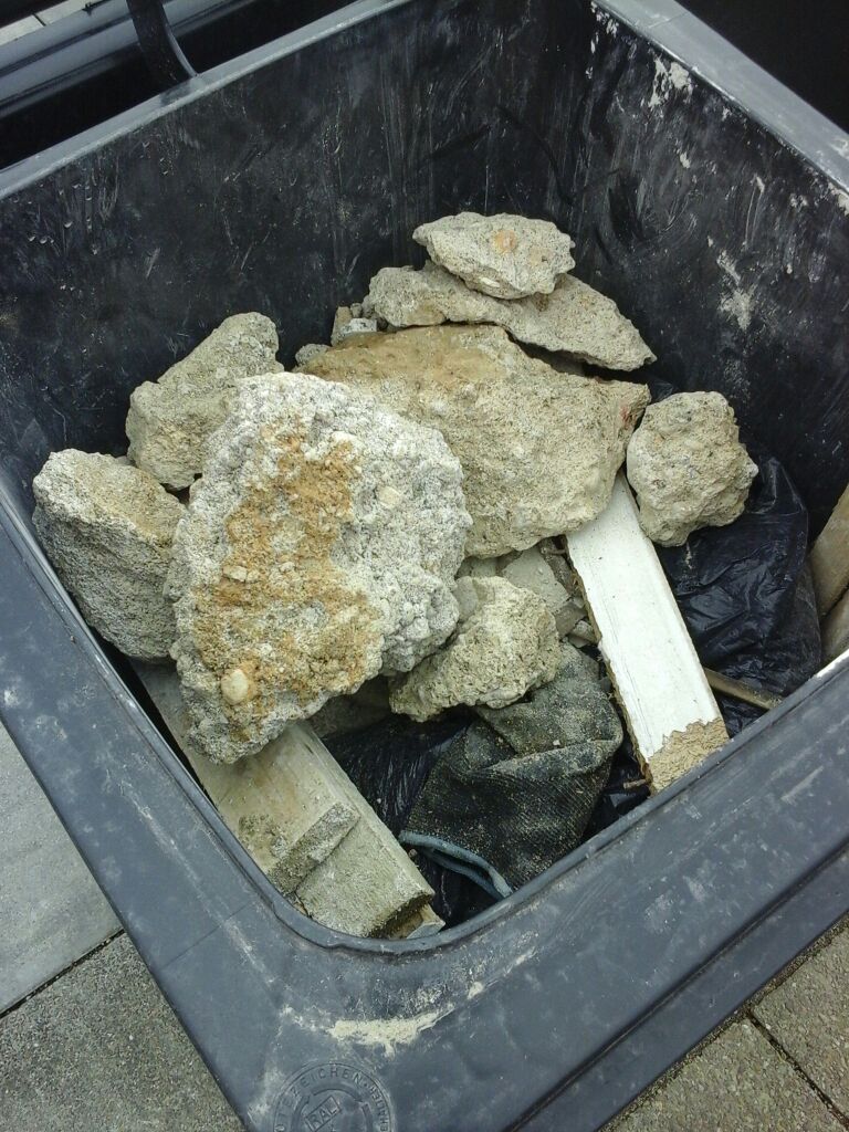 Unter Bauschutt versteht man alles, was auf einer Baustelle beim Neubau, Ausbau und beim Abbruch anfällt. Hierunter fallen mineralische Abfälle und Baumaterialien, wie zum Beispiel Beton, Backsteine, Ziegel, Klinkersteine und Mörtelreste, aber auch Fliesen, Glasbausteine, Keramik oder Sand. Diese Materialien haben auch in geringen Mengen weder etwas in der Bio- noch in der Restmülltonne zu suchen.